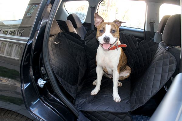 Автогамак для собак с защитой двери и порога автомобиля на половину заднего сидения.