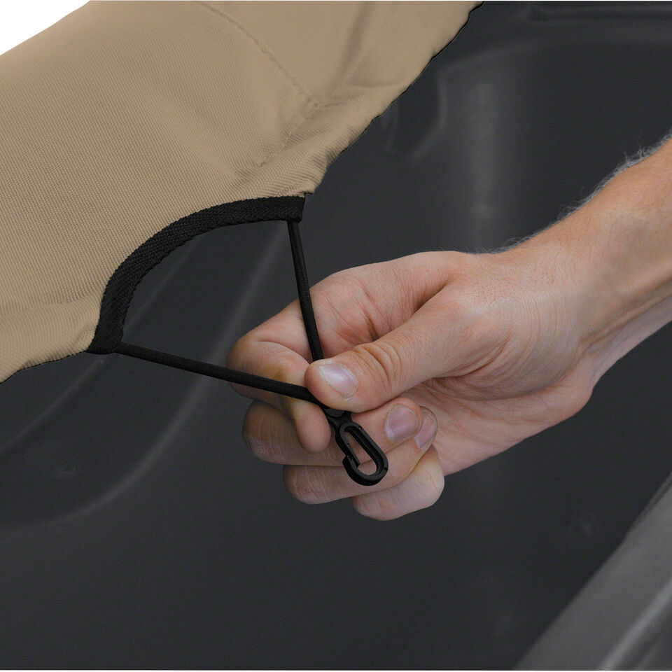 - Эластичная кромка чехла и система ремней обеспечивают индивидуальную посадку.
