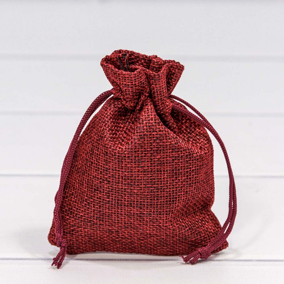 Краткое описание «Мешочки из искусственного льна 9*12 см бордовый»