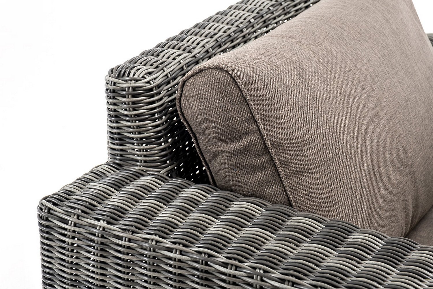 Кресло коллекции Боно имеет широкие подлокотники, просторное сидение и невысокую спинку. Изготавливается оно из алюминия и искусственного ротанга, имеет габаритный размер в собранном виде 100х77,5х90 см. Оплетка кресла окрашена в графитовый цвет (темно-серый), и само кресло будет удачно смотреться в любом интерьере.