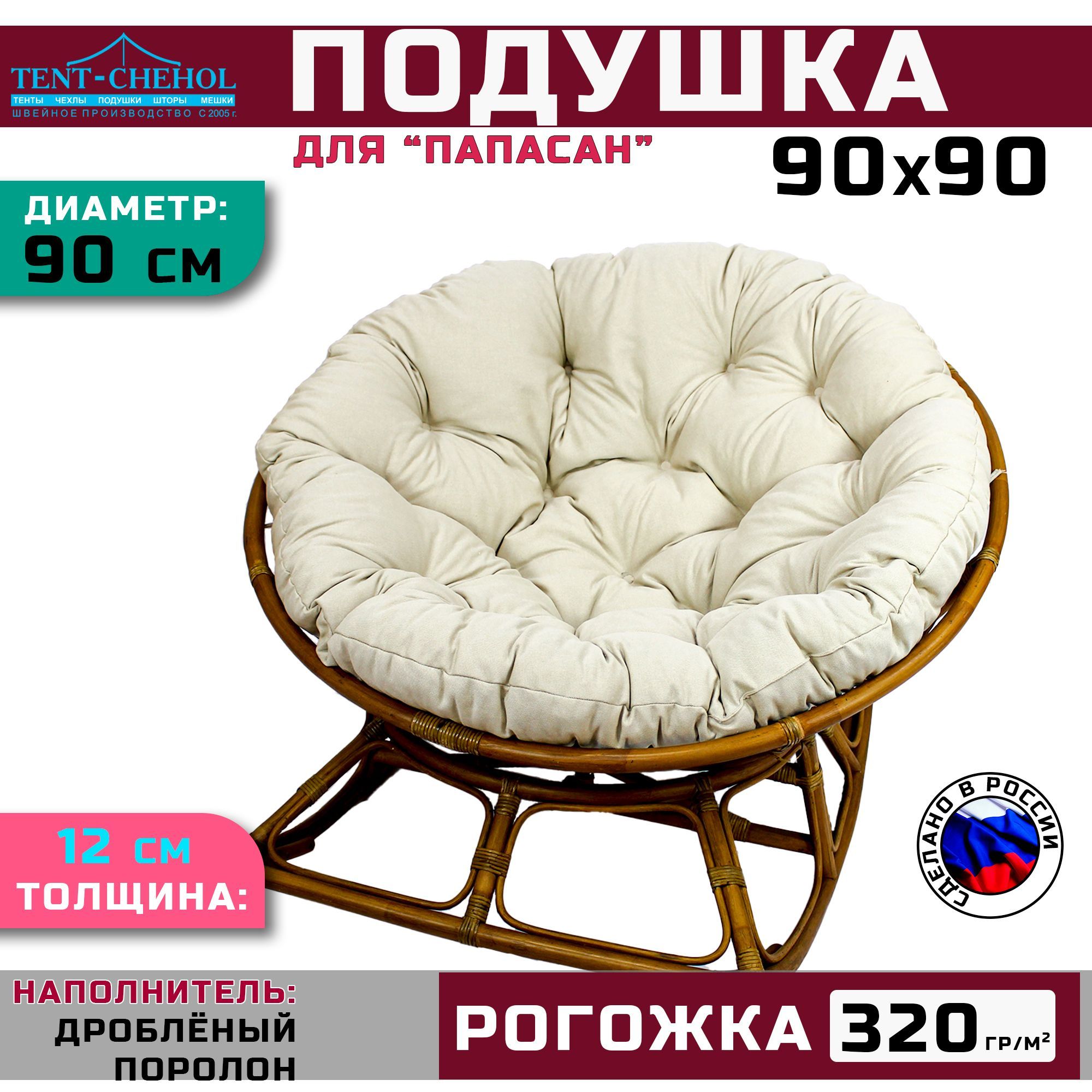 Купить Подушка для кресла и качелей 90 см, светло-бежевая (рогожка) цена 2950 руб. в Москве и СПб с доставкой по России