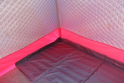 - Шовные соединения теплых палаточных полов герметизированы клеевой пленкой, поэтому они не пропускают воду, снег и вся конструкция остаётся изнутри сухой.
