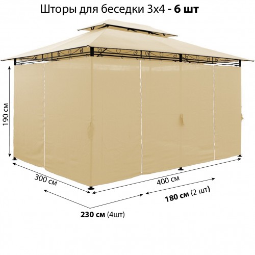 Краткое описание «Комплект плотных штор для беседки 3х4м 6шт, бежевый»