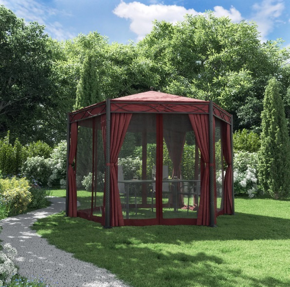 Набор для павильона-шатра «Арени» состоит из боковых штор, противомоскитной сетки и защитного тента для крыши. Поможет создать на участке комфортное место для отдыха без палящего солнца и насекомых.