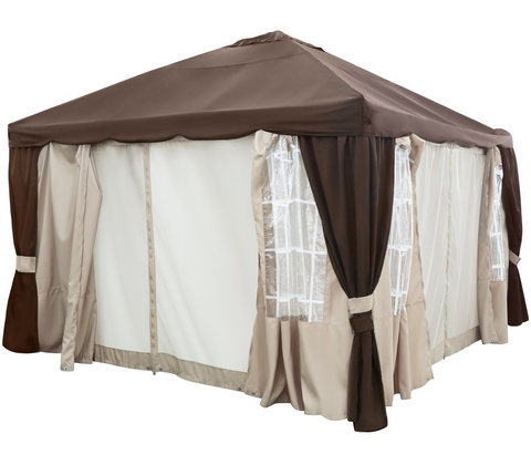 У нас вы можете приобрести крышу, предназначенную для шатра zhengte коричневого цвета. Данная крыша подойдёт для шатра, имеющего длину 400 см, ширину 400 см, а высоту 227 см. Благодаря данной крыше вы будете защищены от осадков и солнца, изготовлена она из полиэстера, покрытого поливинилхлоридом. Данная крыша является водоотталкивающей.