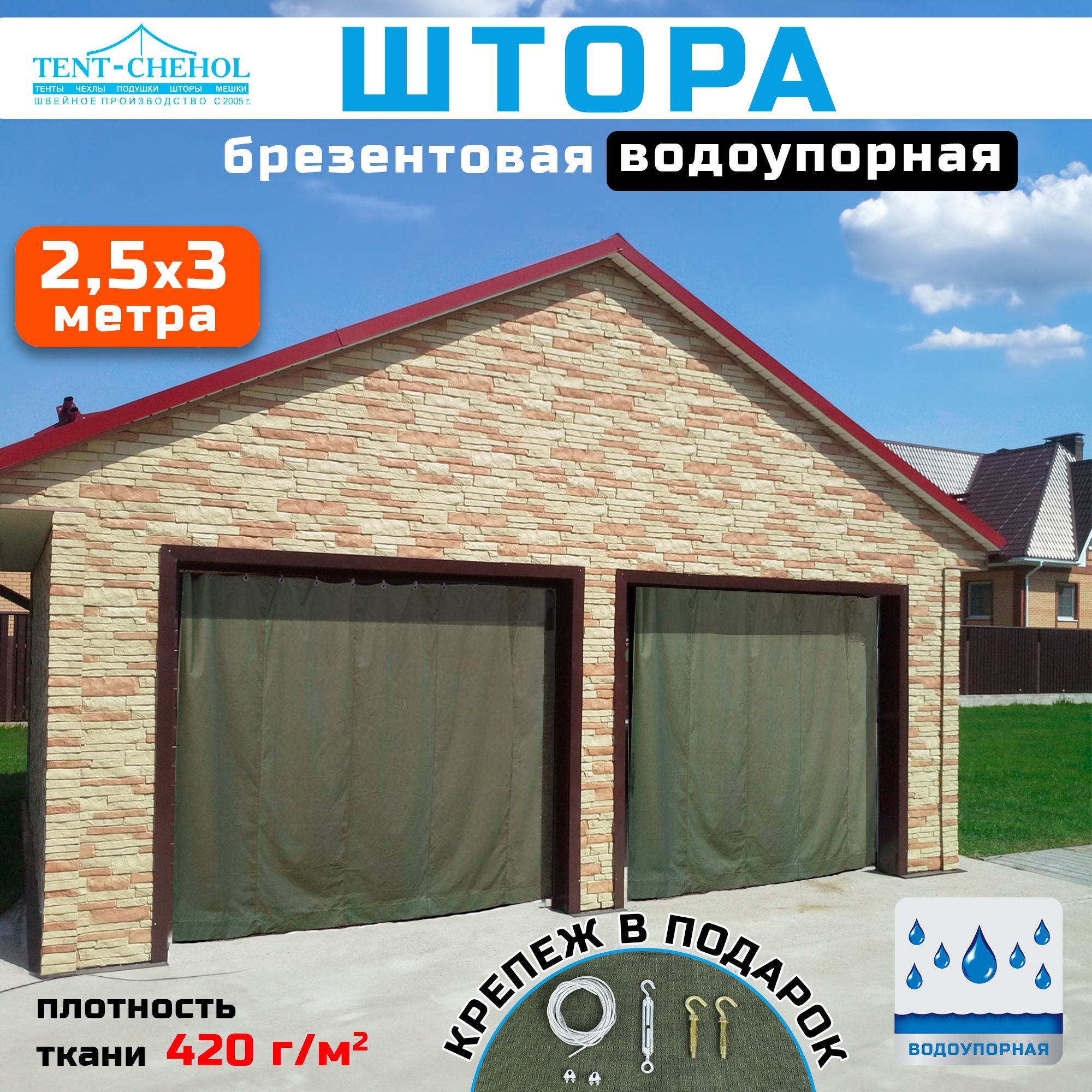Брезентовая штора водоупорная для гаража, высота 250 см, ширина 300 см
