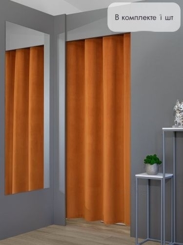 Краткое описание «Штора для примерочной и дома на люверсах бархатная цвет оранжевый, 1 шт»
