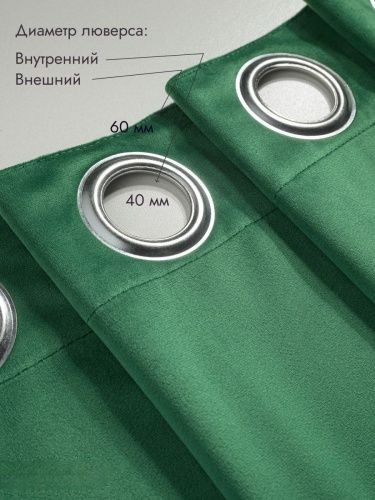 Краткое описание «Штора для примерочной и дома на люверсах бархатная цвет зеленый, 1 шт»