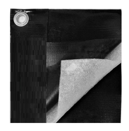 Швы проварены горячим воздухом (герметичны на 100%). По всем краям установлены люверсы (на двух слоях материала, с интервалом 0,5м). На данный материал имеется пожарный сертификат. Цвет - черный. Предназначен для продолжительной эксплуатации в суровых условиях.
