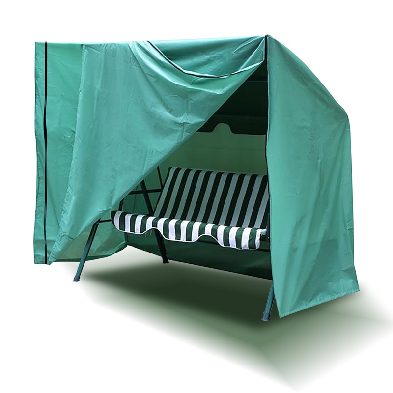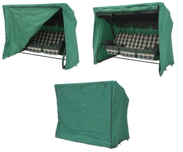 Чехол-укрытие для садовых качелей-беседок полностью покрывает подвесную конструкцию, защищая от грязи, пыли, ультрафиолета и атмосферных осадков. Таким образом, удается продлить срок ее службы, сохраняя презентабельный внешний вид.
