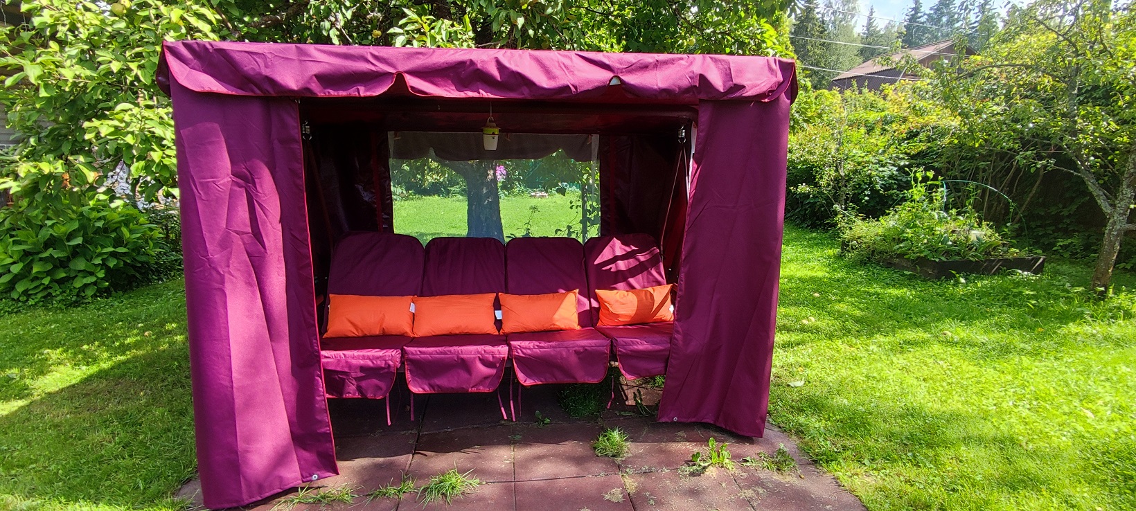 В некоторых случаях сложно подобрать подходящую модель для подвесной конструкции, учитывая ее нестандартную форму или размеры. Но это не повод расстраиваться, ведь можно заказать чехол на качели- беседку по индивидуальным замерам.