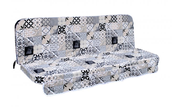 Данный матрас предназначен для садовой качели. Такие матрасы изготавливаются из универсальных тканей, изготовленных в Испании. Благодаря тому, что в такой ткани огромный процент натуральных волокон, она замечательно пропускает воздух, а также является максимально приятной на ощупь. Эта ткань устойчива к появлению пятен, она с лёгкостью разглаживается. Наполнитель изготовлен из пенополиуретана вторичного вспенивания. Спинка, а также сиденье матраса выполнены на молнии, поэтому наполнитель с лёгкостью можно вынуть, а чехол легко можно постирать. Для того, чтобы матрас надёжно держался на качели, на нём есть специальные завязки по бокам.