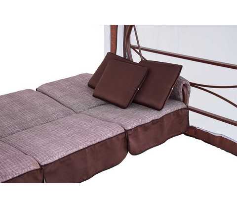 Мы хотим предложить вам приобрести матрасы, предназначенные для садовых качелей-беседки Сирокко. Данный матрас является трёхместным, он подойдёт для размеров каркаса сиденья 166 х 51 см. Толщина матраса при этом составляет 8 см. Выполнен данный матрас в шоколадном цвете. Изготовлены чехлы матраса из такой ткани, как хлопок 100%, а в качестве наполнителя для матраса используется холкон. При необходимости матрас раскладывается и превращается в настоящую кровать для комфортного отдыха. Чехол снимается с наполнителя, благодаря чему его можно постирать.