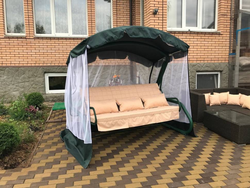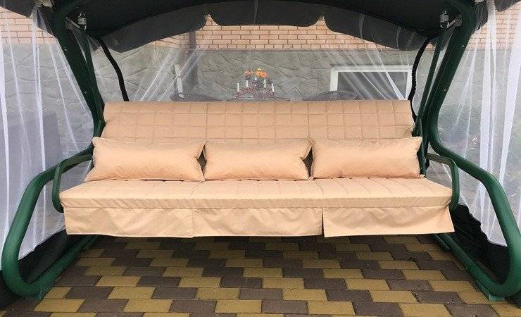 У нас вы можете купить матрас для садовых качелей Сент-Тропе, бежевый. Длина данного матраса составляет 170 см, на нём с комфортом могут разместиться три человека. Также такой матрас снабжен тремя подушками размером 60 х 30 см. Глубина сиденья матраса составляет 55 см, высота спинки 55 см, а длина 170, толщина 8 см. Чехол изготовлен из очень плотной водоотталкивающей ткани, которой не страшны внешние воздействия. В качестве наполнителя мы используем холлофайбер, это современный гипоаллергенный наполнитель, который имеет плотность 1200 г. С этих чехлов с легкостью можно снять матрасы и постирать.