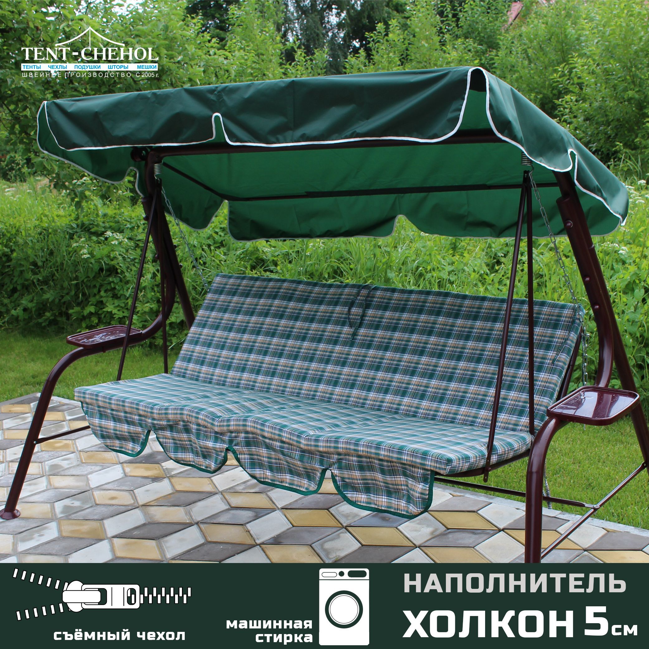 Купить Тент и матрас для садовых качелей, 182х100 и 170х55х55 еловый, зелёная шотландка цена 5900 руб. в Москве и СПб с доставкой по России