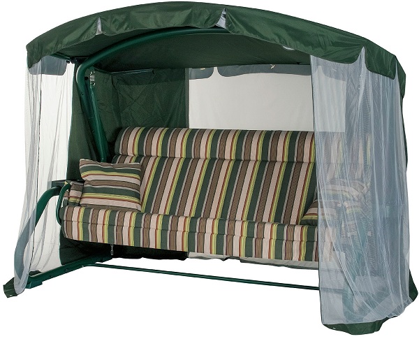 Москитная сетка не вызывает аллергии, так как выполняется из экологически-чистых материалов. Кроме того, это не только защитное приспособление, но и красивый декор. Садовые качели с москитной сеткой смотрятся стильно и романтично