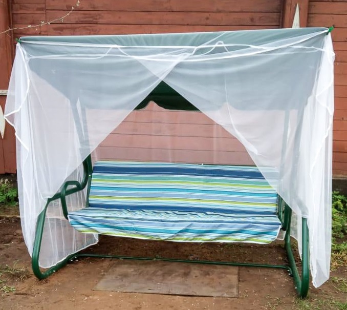 Москитная сетка на качели, как и защитный тент, должна соответствовать некоторым требованиям. Основное из них – размер ячеек, который должен препятствовать проникновению мошкары. Не менее важно, чтобы антимоскитная сеть: