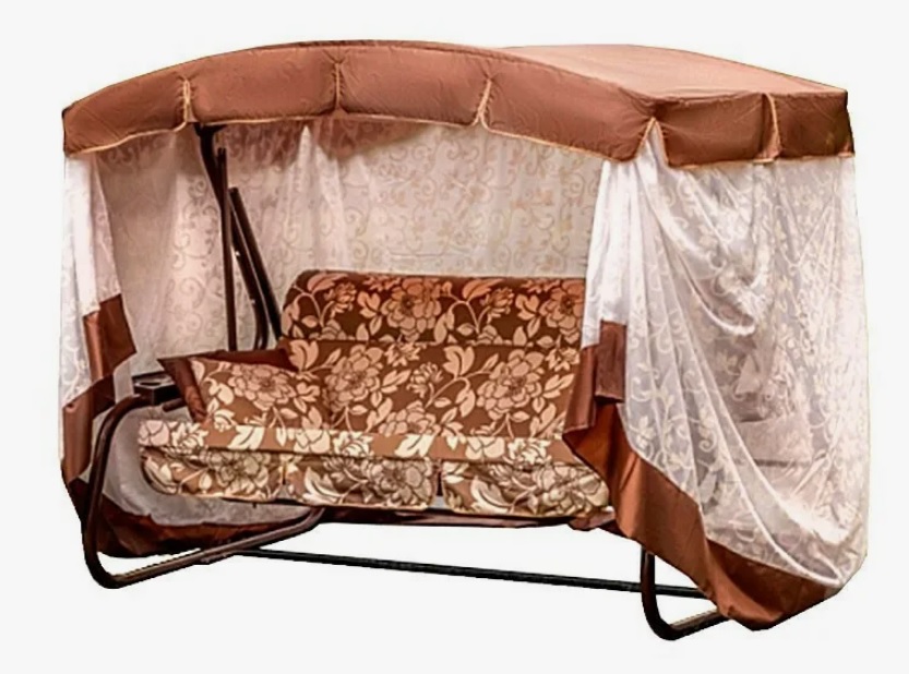 У нас вы можете приобрести тент, предназначенный для трёхместных садовых качелей Азалия, данный тент выполнен в коричневом цвете, он подойдёт для ширины садовых качелей 244,2 см, длины 144 см, высоты 181 см. Изготовлен тент из материала, который совершенно не пропускает через себя воду, а также прямые солнечные лучи.