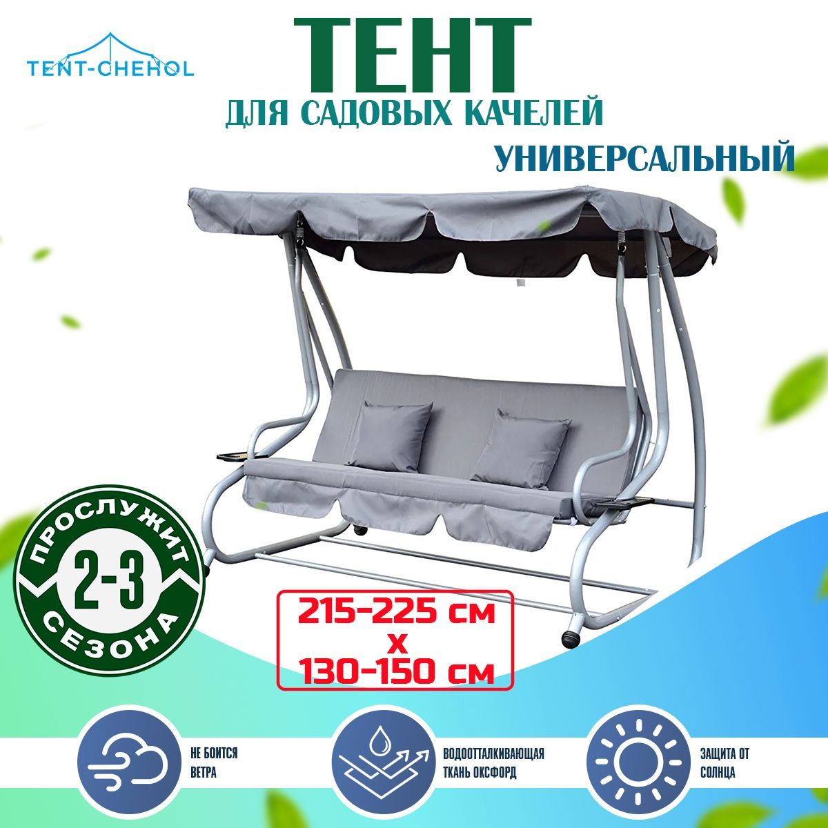 Универсальный тент для садовых качелей, серый, длина 210-225, ширина 130-150 для