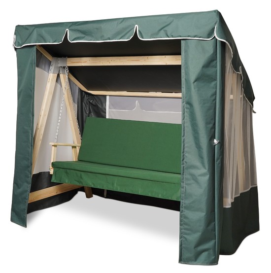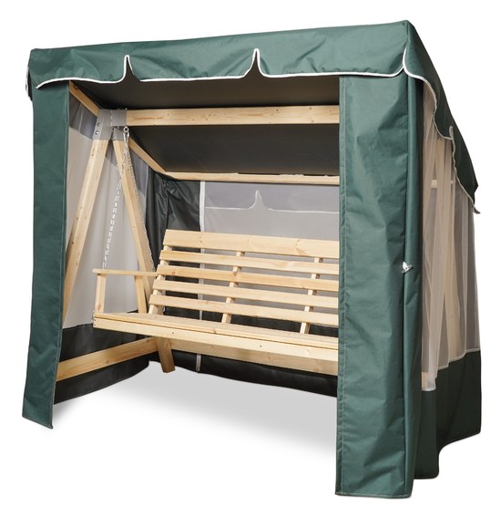 Отдых на деревянных качелях является очень комфортным, это отличное место для того, чтобы расслабиться после тяжелого рабочего дня и отдохнуть. Взрослые могут посидеть в этих качелях вечерами и выпить кофе, почитать книгу, или просто отдохнуть. Дети иногда проводят на таких качелях целый день, на них они могут играть и кататься. Однако, отдых очень сильно могут испортить разнообразные внешние факторы, например палящее солнце, осадки, либо же надоедливые насекомые, которые больно кусаются и мешают отдыху. Однако, выход все же есть, вам просто нужно приобрести специальный тент, предназначенный для садовых качелей. Кроме того, некоторые модели тентов идут в комплекте.