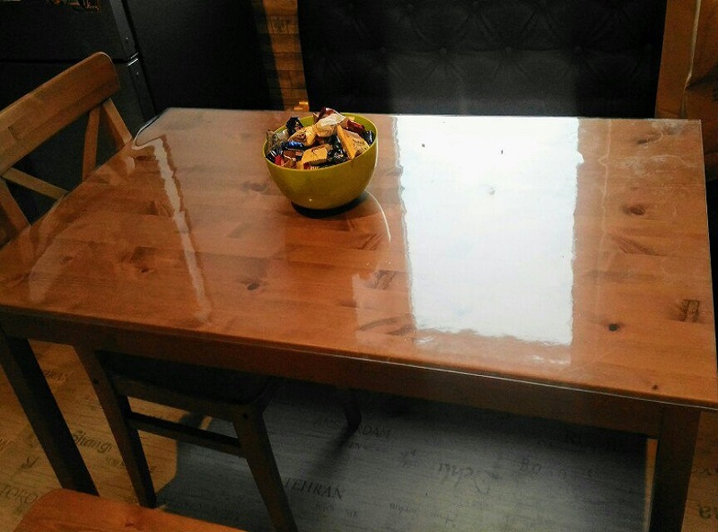 Если вы приобрели стеклянный стол, то скорее всего вам не захочется закрывать его скатертью, однако, защитить его все же нужно. В таком случае стоит приобрести прозрачную накладку из ПВХ. Она устойчива к внешнему воздействию, испортить ее намного сложнее, чем стекло. Она поможет сохранить презентабельный внешний вид стеклянного стола, но при этом не позволит его испортить.